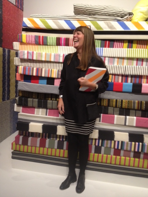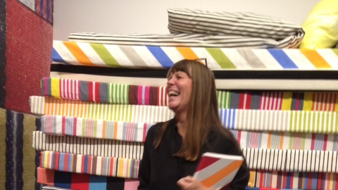 Hennes konceptuella dagdrömmar går i ljusa pastellfärger, ”det är ju ändå Formex vårutställning”, och det mjuka, fluffiga accentueras av råare material som plåt och trä.