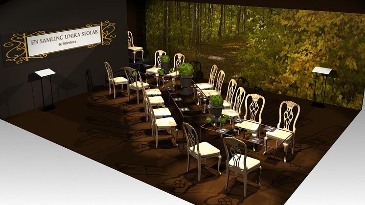 – Jag vill att stolarna ska synas tillsammans i en stor matsalsgrupp, där kontrasten mot omgivningen tillåter dem att sticka ut och tydligt visa hur unik varje enskild stol är. De kommer att visas i en utomhusmiljö, med information om stolen i form av ett inbjudningskort utplacerat på bordet. Målet är att skapa en pedagogisk och intressant utställning som också berättar om samlaren Bo Söderberg. Det säger designern bakom utställningen, Malin Marceau från Stockholmsmässan.
