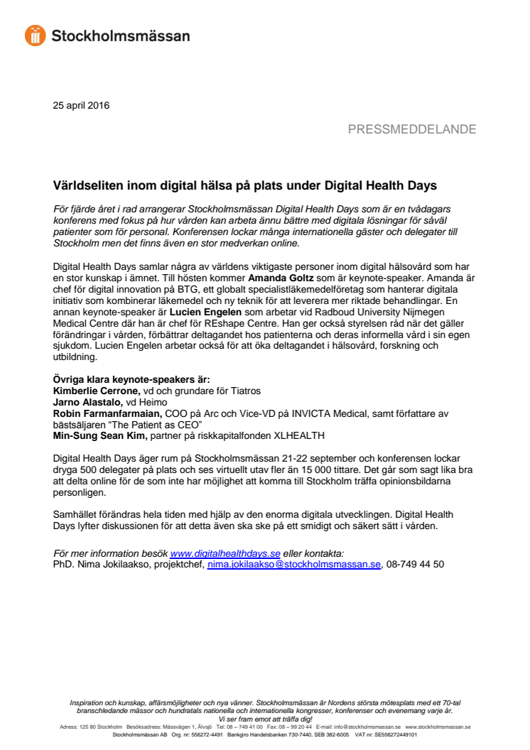 För mer information besök www.digitalhealthdays.se eller kontakta: