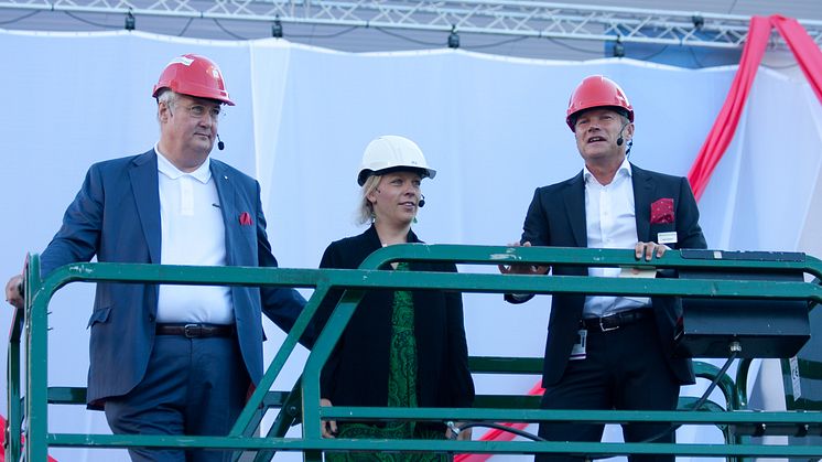 Vind i seglen när Stockholmsmässans nya entré invigdes