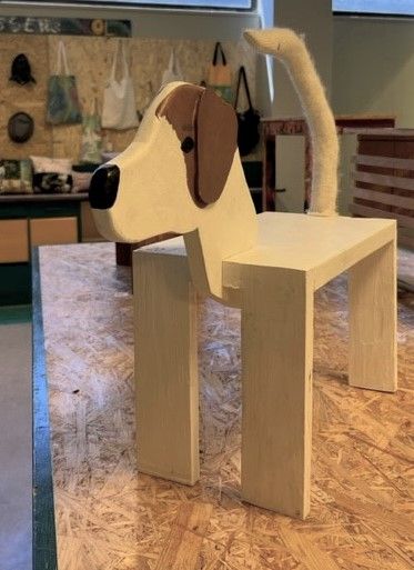 Glad-hund-pall av återbrukat material - elevutställning från Bagarmossens skola