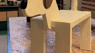 • Glad-hund-pall av återbrukat material - elevutställning från Bagarmossens skola