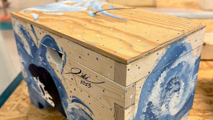 • Låda skapad av återbrukat material av elev från Bagarmossens skola