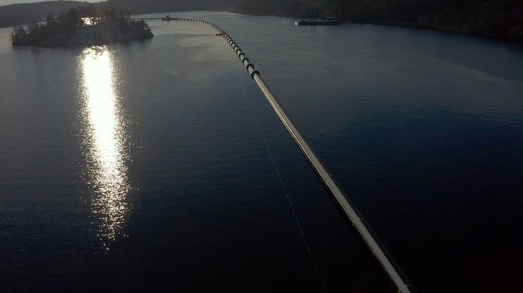 Den enorma ledningen fraktades i april i år i tre 500 meter långa delar sjövägen från Stathelle söder om Oslo till Stockholm. En transport som tog fem dagar efter att ha rundat södra Sverige, passerat Öland och Gotland. Ledningarna lyftes med lyftkranar och drogs på specialkonstruerade ramper över slussen i Södertälje för att sedan fortsätta resan vidare mot Stockholm och Drottningholm.