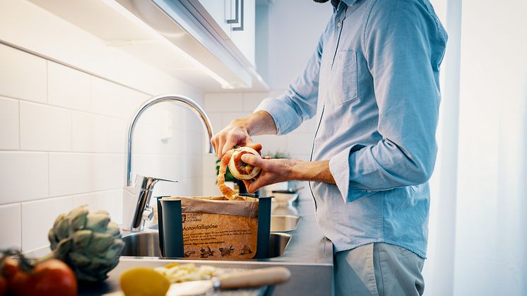 – Vi vill förändra ett beteende i köket så att fler ska börja tänka på att sortera de skal och rester som blir över efter matlagningen. Genom återvinningen minskar matavfallets miljöpåverkan, säger Marita Söderqvist,enhetschef för Projekt matavfall på Stockholm Vatten och Avfall.
