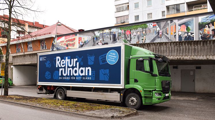 Returrundan är en lastbil och en ny utökad service som kommer att dyka upp i hela Stockholm. Den kommer stanna på 56 olika platser med totalt 224 stop för att samla in ägodelar och skräp som Stockholmarna vill göra sig av med.