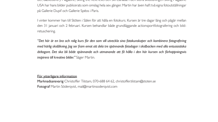 Mejl skickat till __email__. Klicka på länken i mejlet för att följa Stöten i Sälen AB.