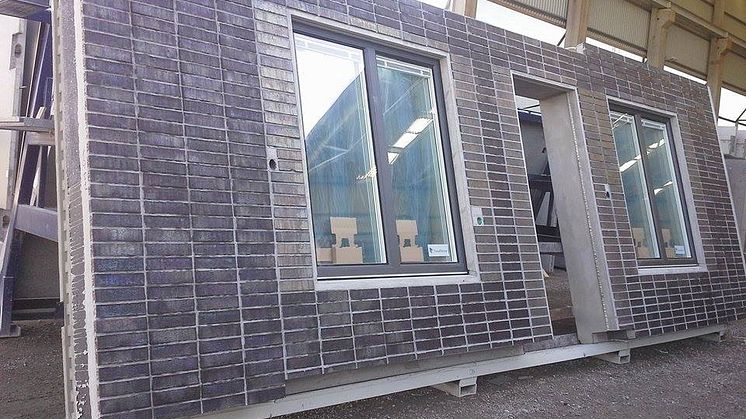 Varg arkitekter har ritat husen och försett sandwichfasaderna med växelvisa ytor av tegel och infärgad vit betong med matris struktur.