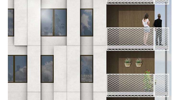 Strängbetongs fabrik i Örebro gör fasader och bärande innerväggar, balkongerna tillverkas i Hudiksvall och trapporna i Norberg.
