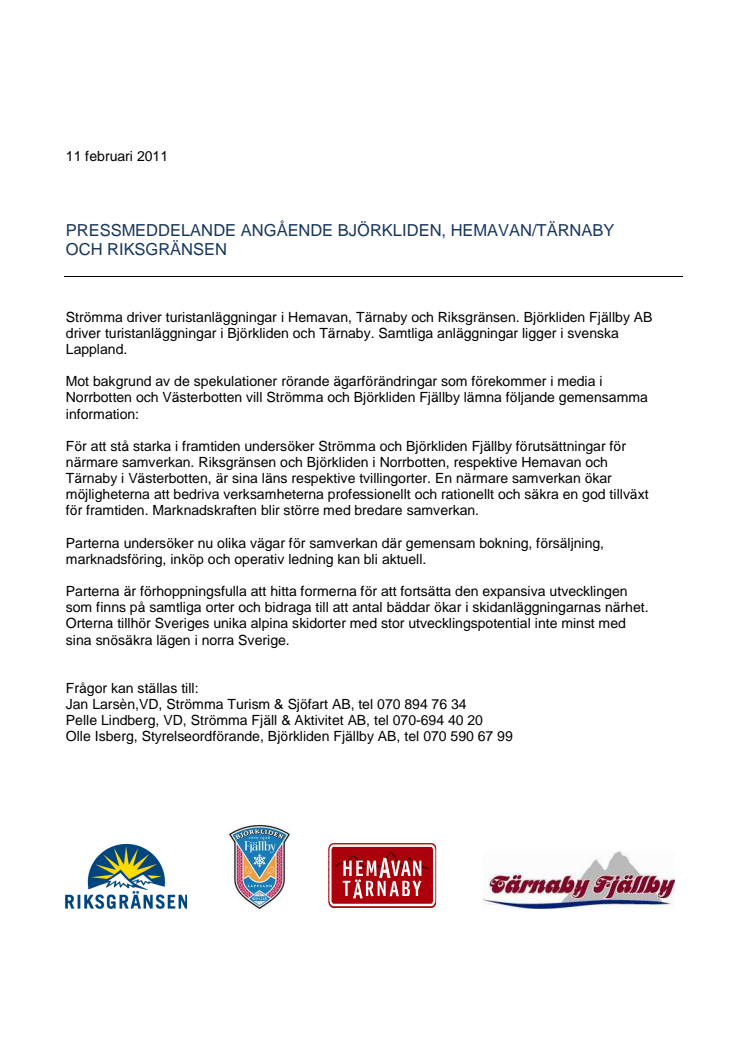 ANGÅENDE BJÖRKLIDEN, HEMAVAN/TÄRNABY OCH RIKSGRÄNSEN