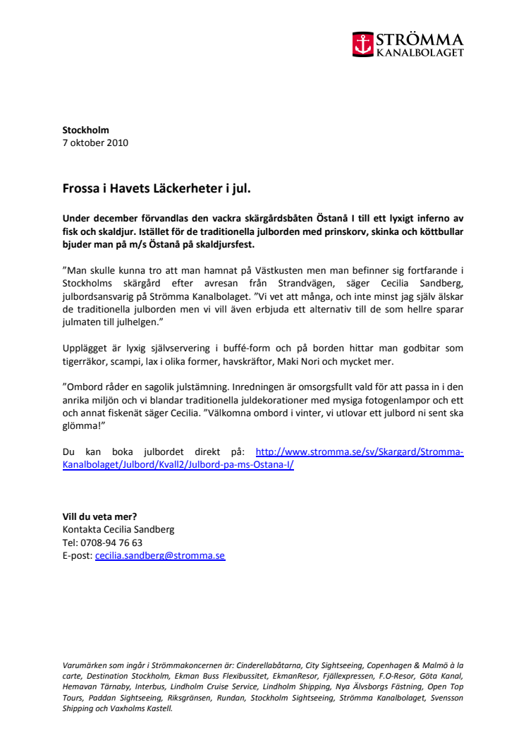 Under december förvandlas den vackra skärgårdsbåten Östanå I till ett lyxigt inferno av fisk och skaldjur. Istället för de traditionella julborden med prinskorv, skinka och köttbullar bjuder man på m/s Östanå på skaldjursfest.