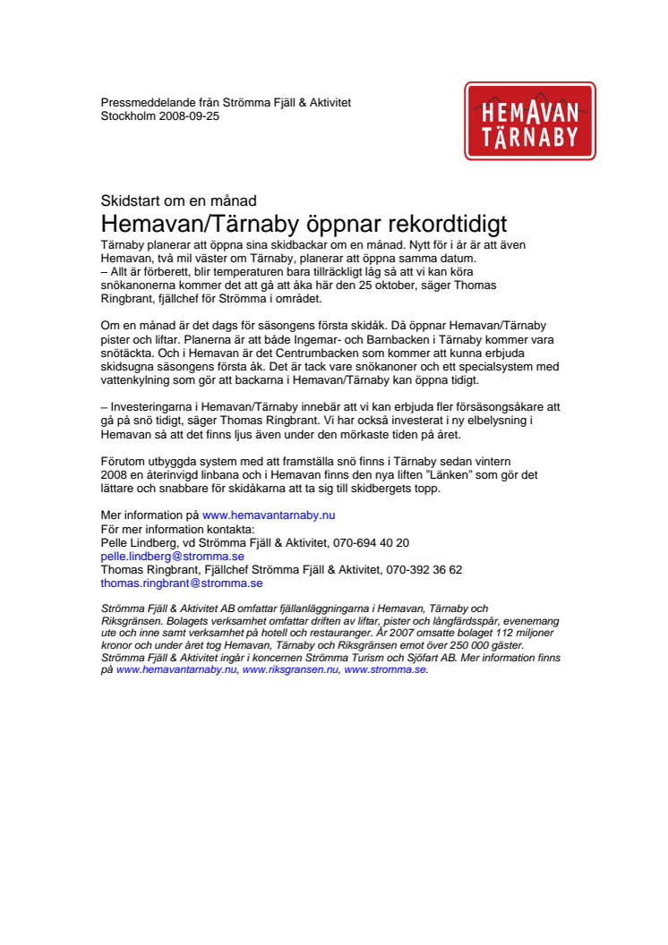Hemavan/Tärnaby öppnar rekordtidigt