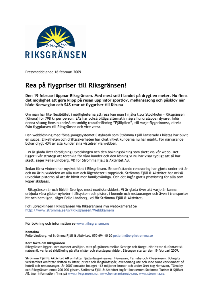Den 19 februari öppnar Riksgränsen. Med mest snö i landet på drygt en meter. Nu finns det möjlighet att göra klipp på resan upp inför sportlov, mellansäsong och påsklov när både Norwegian och SAS rear ut flygpriser till Kiruna.