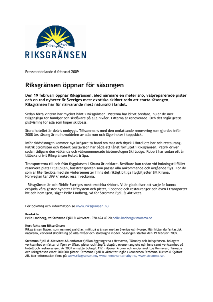 Den 19 februari öppnar Riksgränsen. Med närmare en meter snö, välpreparerade pister och en rad nyheter är Sveriges mest exotiska skidort redo att starta säsongen. Riksgränsen har för närvarande mest natursnö i landet.