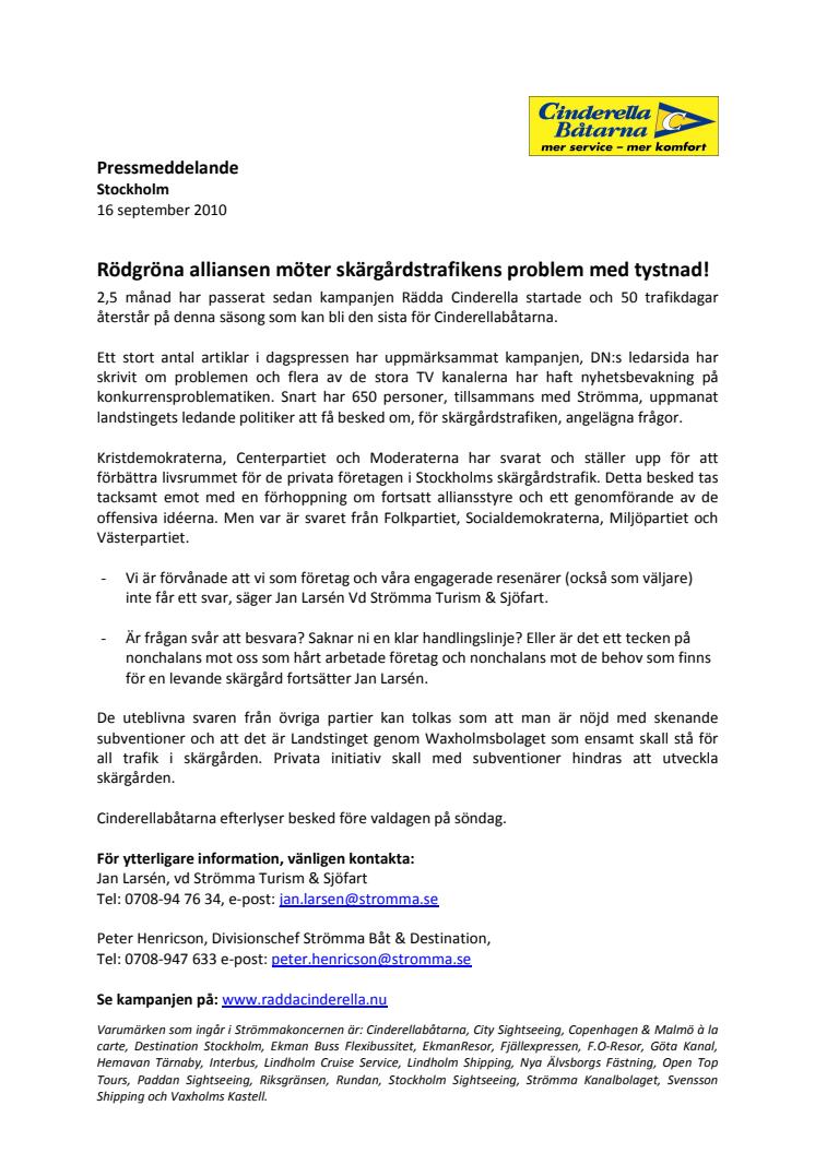 Rödgröna alliansen möter skärgårdstrafikens problem med tystnad!