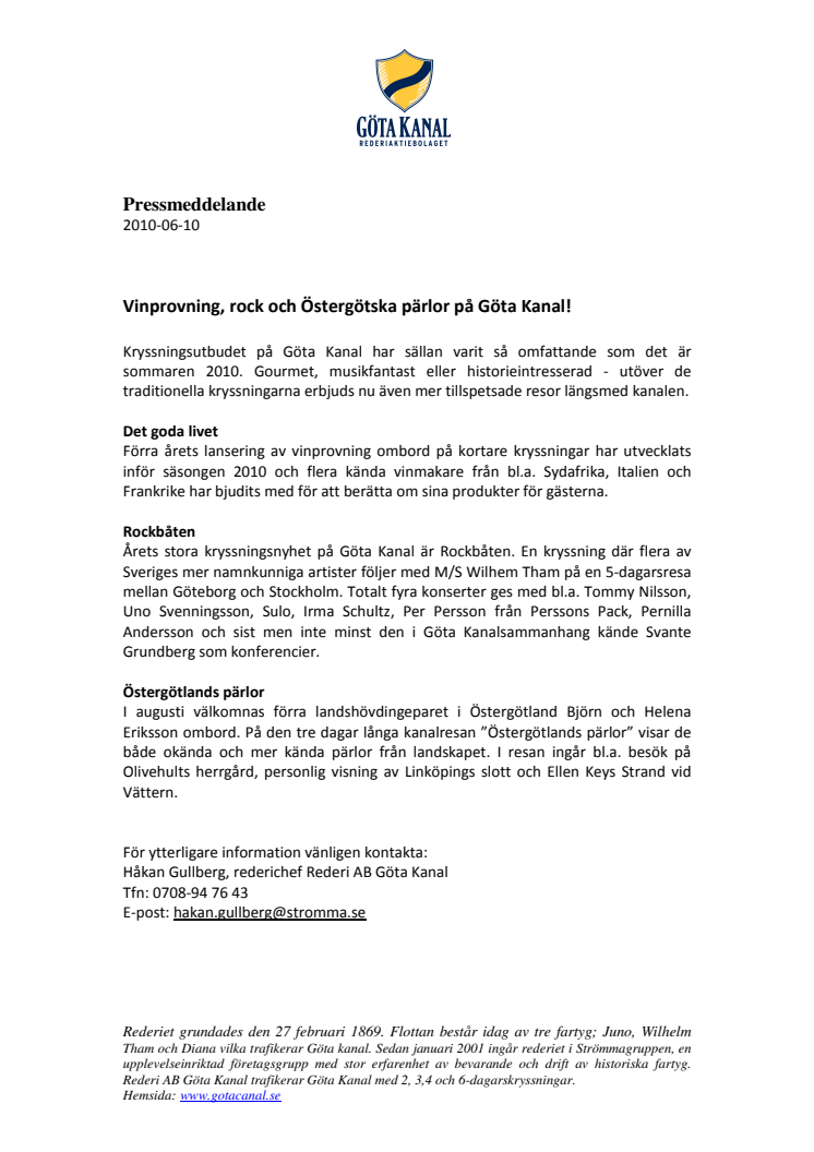 Vinprovning, rock och Östergötska pärlor på Göta Kanal!
