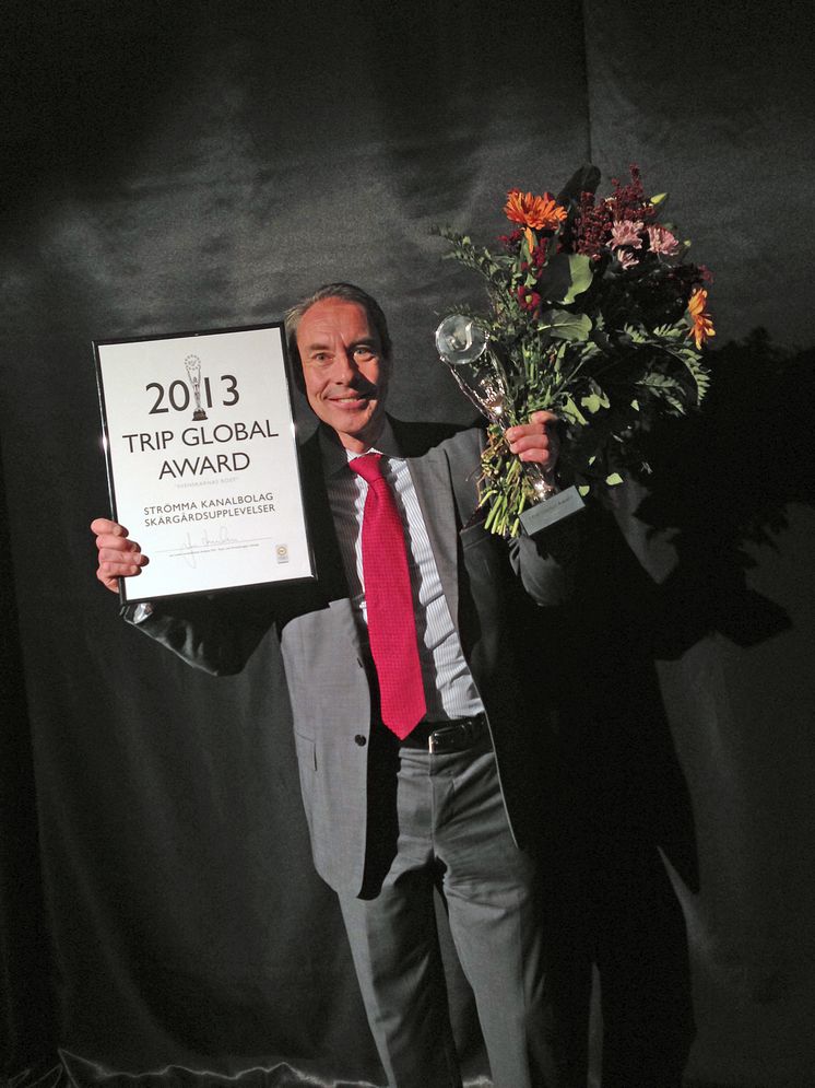 Affärsområdeschefen för Strömma Sverige Peter Henricson tog emot priset TRIP Global Award för "Den bästa upplevelsen i Sverige" (Svenskarnas röst) på Turistgalan 2013.