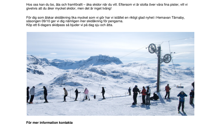 För dig som älskar skidåkning lika mycket som vi gör har vi istället en riktigt glad nyhet i Hemavan Tärnaby, säsongen 09/10 ger vi dig nämligen mer skidåkning för pengarna.