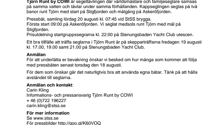 Inbjudan till media att följa med pressbåt Tjörn Runt by COWI 2016