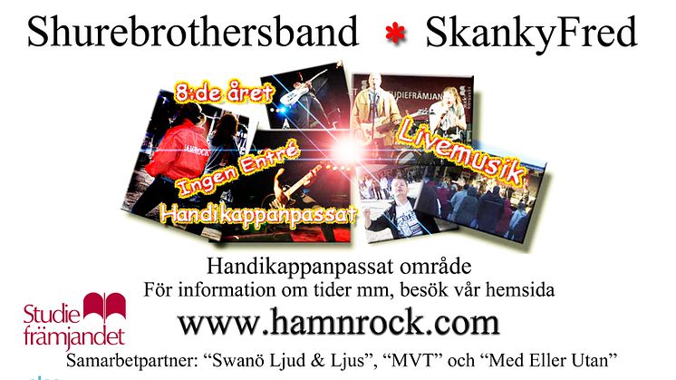 Fredag 31 maj arrangeras festivalen Hamnrock i Motala för åttonde gången i rad. Bakom festivalen står Studiefrämjandet i Östergötland och föreningen Hamnrock. Festivalen har tillgängligheten i fokus - ett arrangemang där man kan mötas oavsett vilka förutsättningar man har. Det är därför ingen entré och området är tillgänglighetsanpassat för personer med olika funktionsnedsättningar.