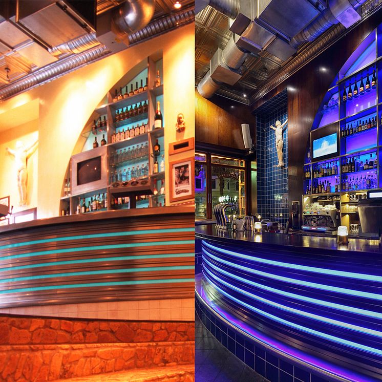 Joe Farelli's då och nu - till vänster designen från 1999, till höger 2017-versionen.