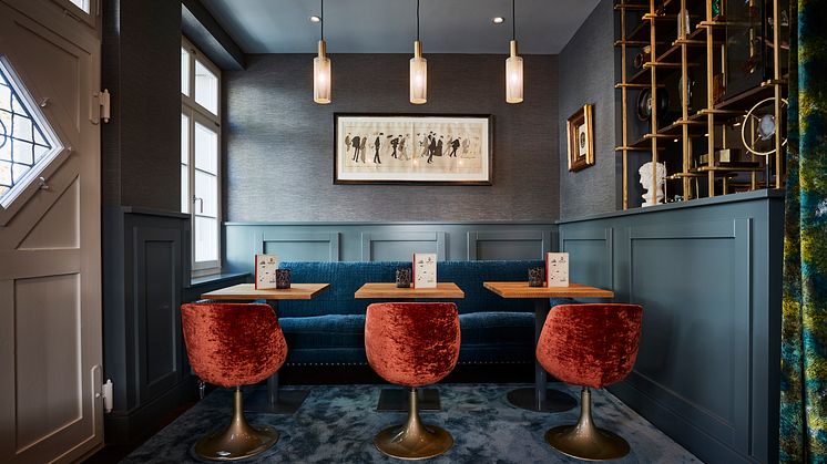 Hotellet är fullt av överraskningar och samtliga rum har sin egen karaktär med inspiration från berättelsen om speditören som tröttnade på ekorrhjulet och började leva istället: samlingen av antikviteter, champagnekorkar, souvenirer, tavlor, paraplykryckor, modelltåg och vinetiketter präglar inredningen som är påtagligt icke-schweizisk. Inte minst det lilla biblioteket på tredje våningen, med handplockade parisiska böcker och suggestiva bilder från gångna tider, sätter en allt annat än dygdig ton.