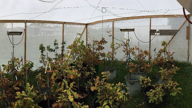 – Den högre temperaturen vi utsatte växterna för minskade antalet svamparter och förändrade artsammansättningen på ekbladen, särskilt på hösten, säger Maria Faticov, forskare vid Institutionen för ekologi, miljö och botanik (DEEP) vid Stockholm Universitet.