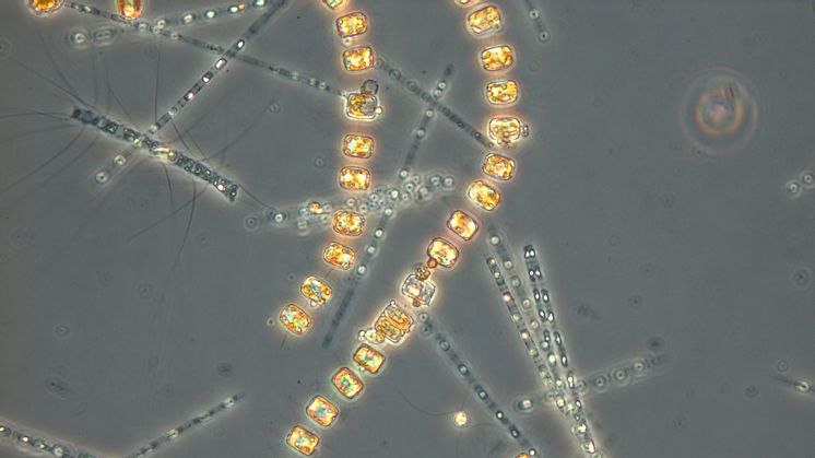 Kiselalger och dinoflagellater och andra grupper av mikroskopiska alger blir snabbt så många att vattnet färgas orangebrunt eller brungrönt och blir alldeles grumligt. Men tittar man närmare på dem i ett mikroskop så är de minst lika vackra som en blåsippsbacke.