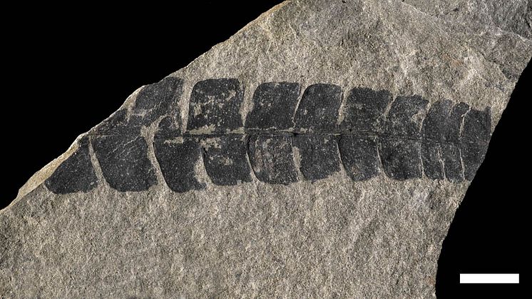 Ett 200 miljoner år gammalt mycket välbevarat fossilt löv från östra Grönland. Växten var av släkten Anomozamites och är ett exempel på de fossila löv som studerades.