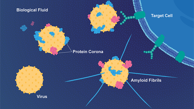 Ny forskning från Stockholms universitet och Karolinska Institutet visar att virus samspelar med biologiska vätskor hos sina värdar vilket leder till en beläggning av protein på virusets yta. Proteinskiktet gör viruset mer smittsamt och underlättar bildningen av de plack som är typiska för neurodegenerativa sjukdomar som Alzheimers.