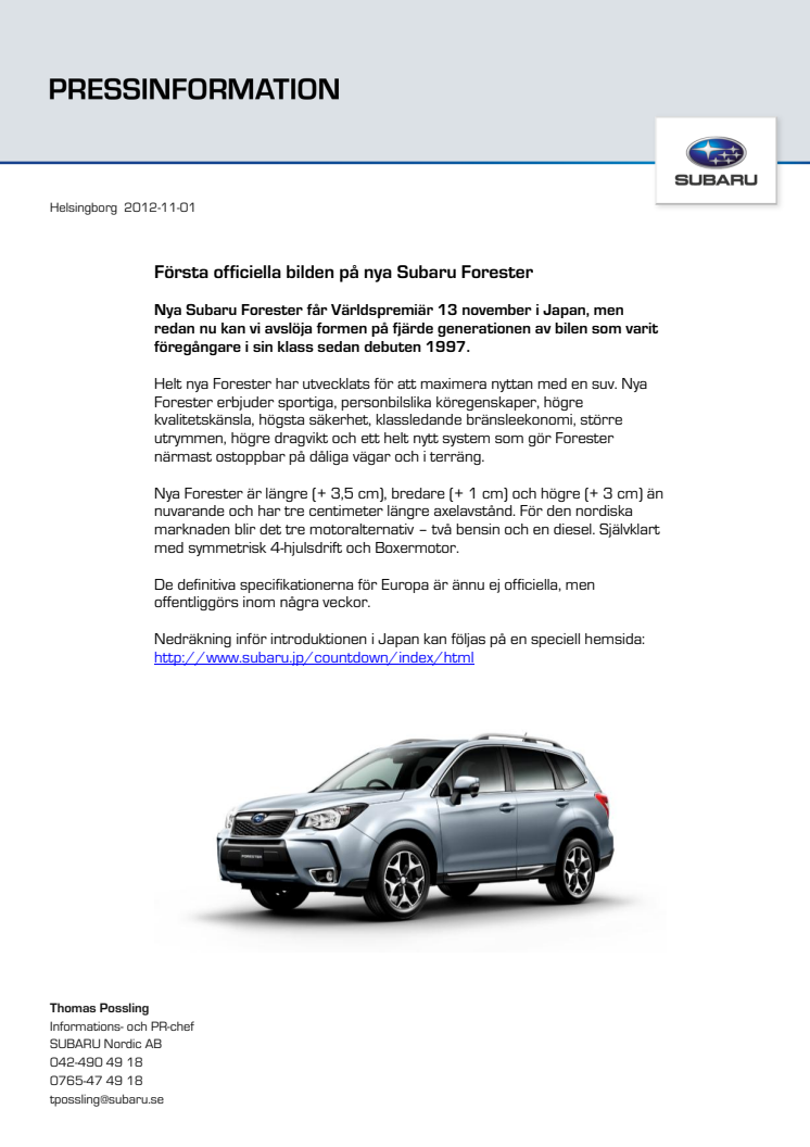 Nya Subaru Forester får Världspremiär 13 november i Japan, men redan nu kan vi avslöja formen på fjärde generationen av bilen som varit föregångare i sin klass sedan debuten 1997.