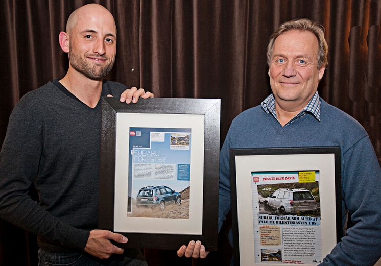 Beviset, i form av en tavla, mottogs av Steffen Arnt (t.h.), som samtidigt även fick tavlan för fjolårets pris, vid en ceremoni i mediahusets restaurant. Tidningens testredaktör, Sören Juul (t.v.) överlämnade beviset på årets utmärkelse.
