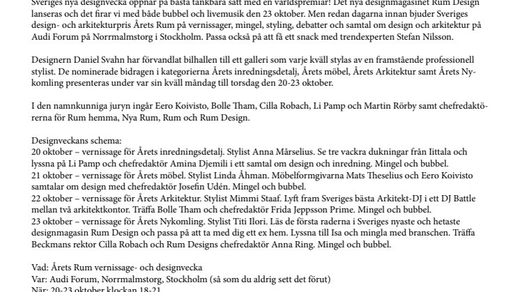 Vad: Årets Rum vernissage- och designvecka