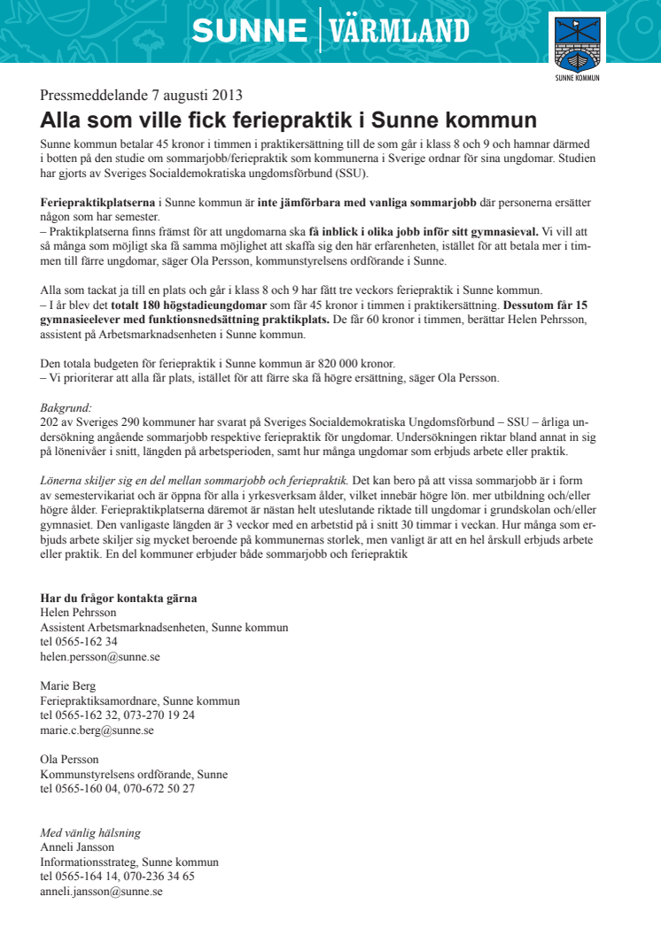 Alla som ville fick feriepraktik i Sunne kommun