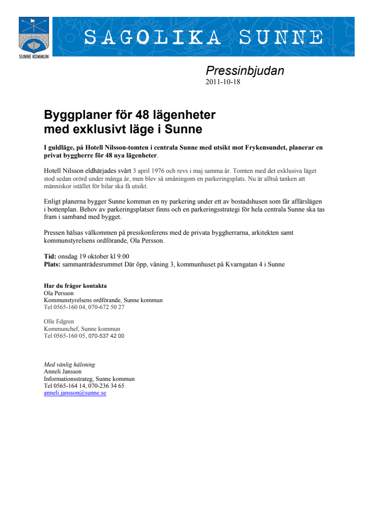 Byggplaner för 48 lägenheter med exklusivt läge i Sunne