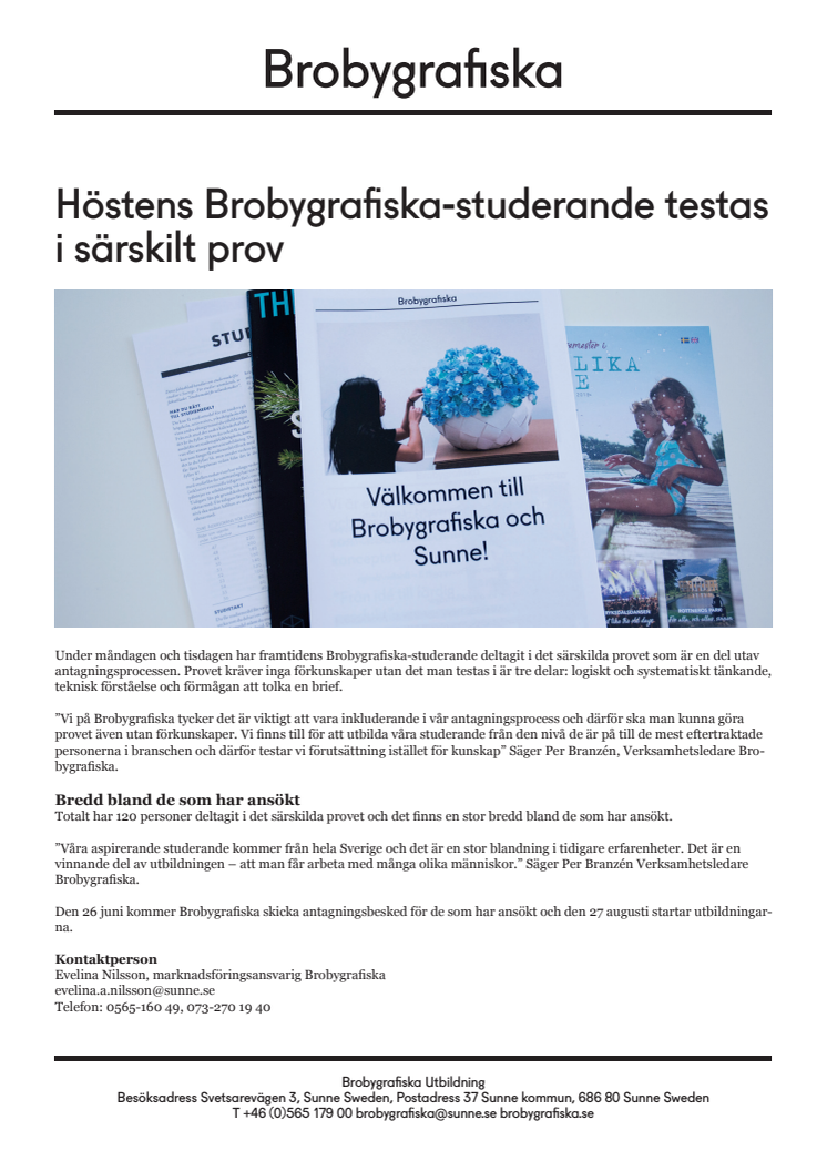 Under måndagen och tisdagen har framtidens Brobygrafiska-studerande deltagit i det särskilda provet som är en del utav antagningsprocessen. Provet kräver inga förkunskaper utan det man testas i är tre delar: logiskt och systematiskt tänkande, teknisk förståelse och förmågan att tolka en brief.