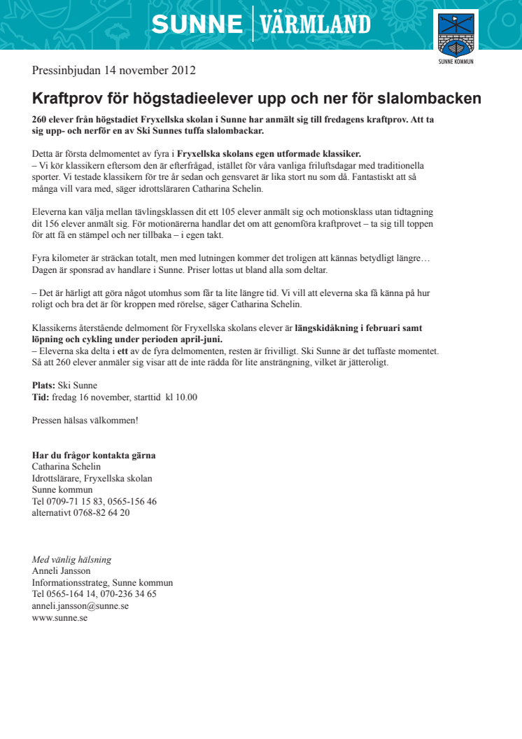 260 elever från högstadiet Fryxellska skolan i Sunne har anmält sig till fredagens kraftprov. Att ta sig upp- och nerför en av Ski Sunnes tuffa slalombackar. Detta är ett av fyra delmoment i skolans egen utformade klassiker.