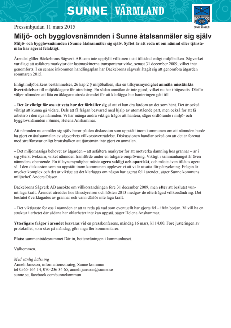 Miljö- och bygglovsnämnden i Sunne åtalsanmäler sig själv