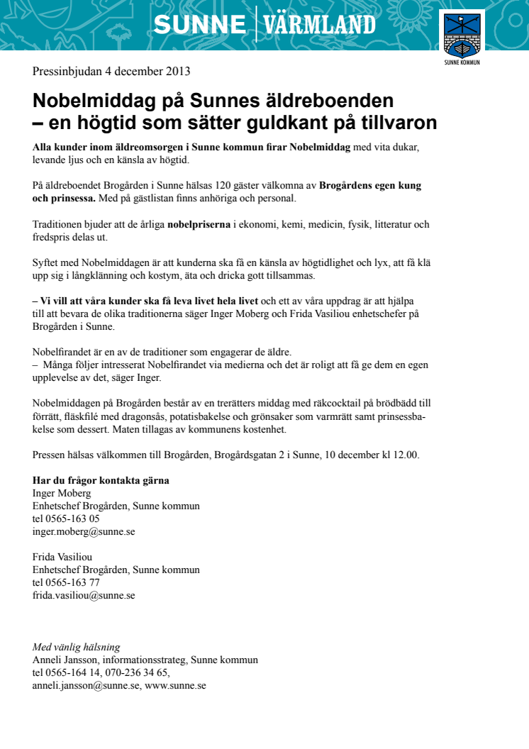 Nobelmiddag på Sunnes äldreboenden