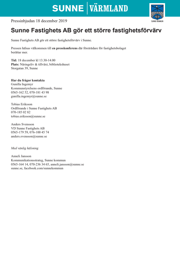 Sunne Fastighets AB gör ett större fastighetsförvärv i Sunne.