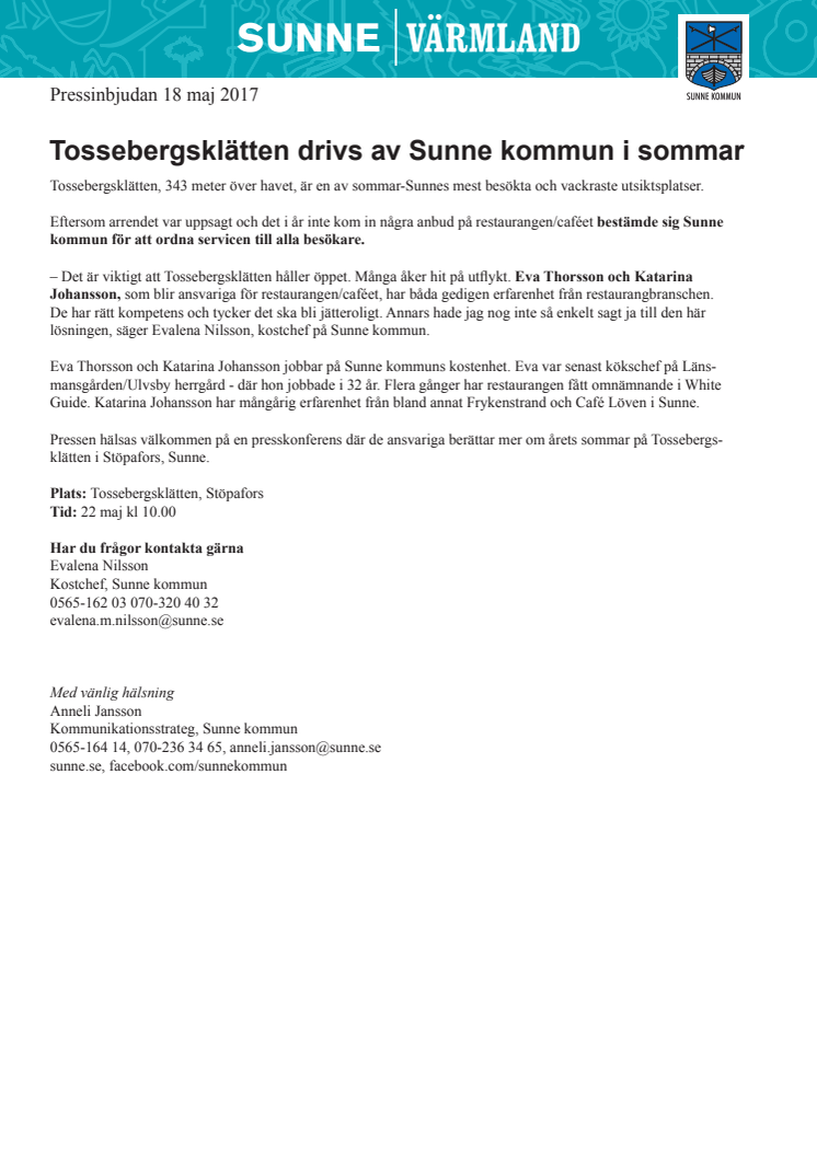 Innehållet får laddas ner, användas och delas i olika mediekanaler av t.ex. journalister, bloggare, krönikörer, opinionsbildare etc., i syftet att förmedla, redogöra för och kommentera ert pressmeddelande, inlägg eller information, så länge innehållet används oförändrat och i dess helhet. Upphovsmannen ska anges i den omfattning och på det sätt god sed kräver (vilket bl.a. innebär att fotografer till bilder nästan alltid måste anges).