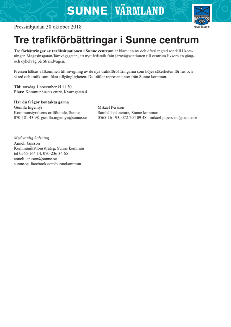 Tre trafikförbättringar i Sunne centrum