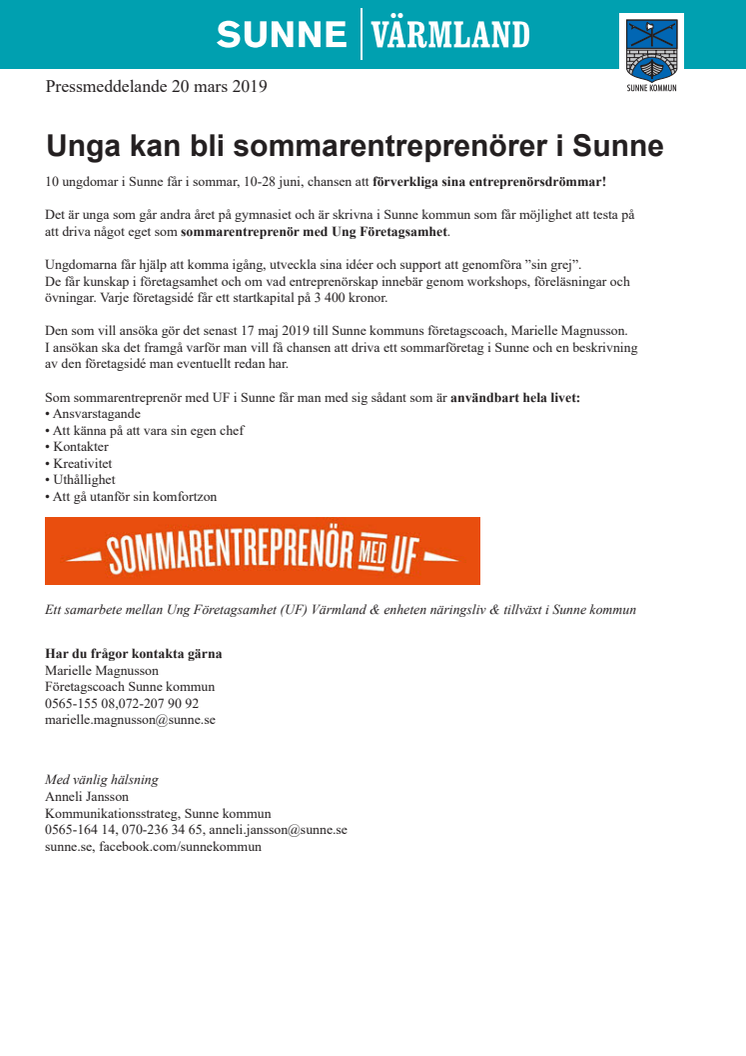 10 ungdomar i Sunne får i sommar, 10-28 juni, chansen att förverkliga sina entreprenörsdrömmar!