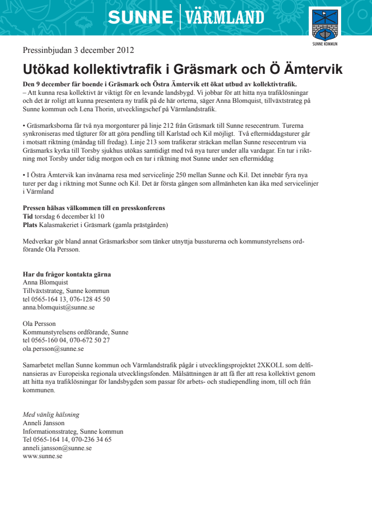 Den 9 december får boende i Gräsmark och Östra Ämtervik ett ökat utbud av kollektivtrafik. Målsättningen är att få fler att resa kollektivt genom att hitta nya trafiklösningar för landsbygden som passar för arbets- och studiependling.