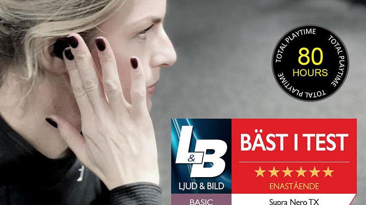 Nordens största magasin för konsumentelektronik, Ljud & Bild, har offentliggjort sitt jämförelsetest av marknadens helt trådlösa öronproppar (true wireless) SUPRA NERO-TX tilldelades "Bäst i Test" och betyget 6/6 med motiveringen: