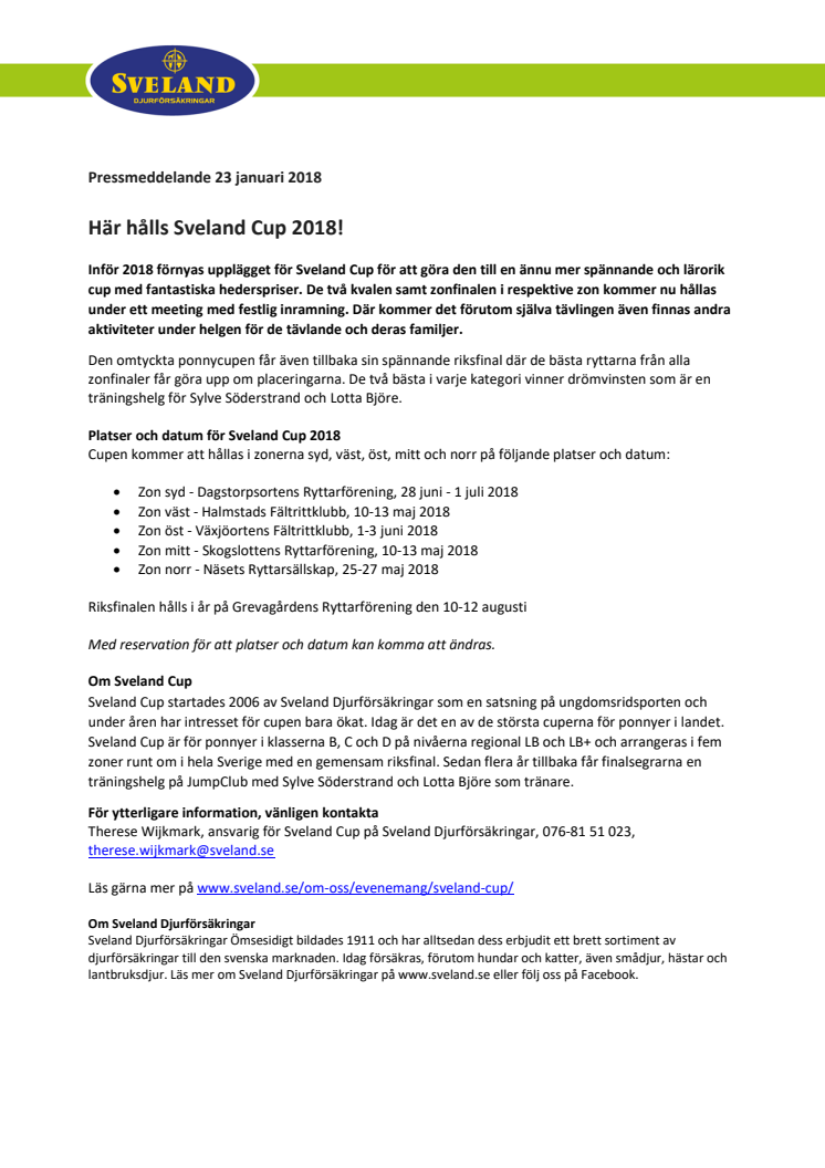 Inför 2018 förnyas upplägget för Sveland Cup för att göra den till en ännu mer spännande och lärorik cup med fantastiska hederspriser. De två kvalen samt zonfinalen i respektive zon kommer nu hållas under ett meeting med festlig inramning. Där kommer det förutom själva tävlingen även finnas andra aktiviteter under helgen för de tävlande och deras familjer.