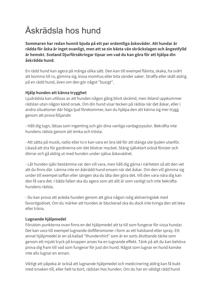 Sommaren har redan hunnit bjuda på ett par ordentliga åskoväder. Att hundar är rädda för åska är inget ovanligt, men att se sin bästa vän skräckslagen och ångestfylld är hemskt. Sveland Djurförsäkringar tipsar om vad du kan göra för att hjälpa din åskrädda hund.