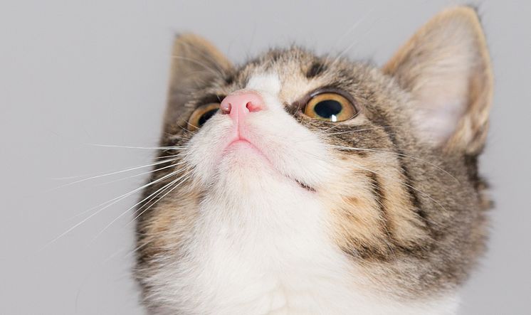 Kattunge som tittar upp