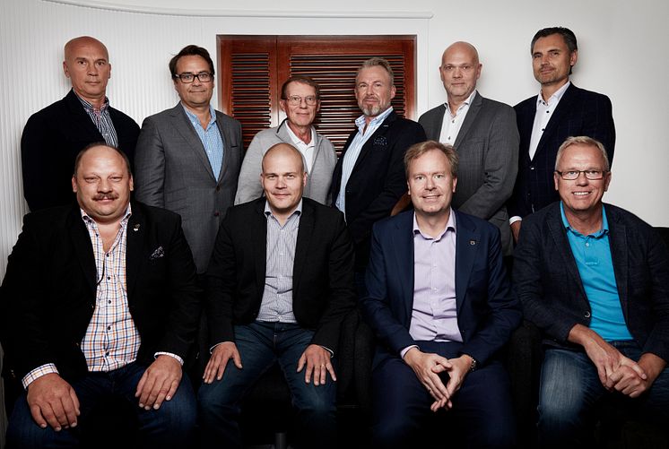 Representanter från Svensk Byggplåts medlemsföretag. Bakre raden från vänster: Kari Koskinen (Rheinzink), José Rovira (SSAB), Pär Sixtensson (Dala Profil), Pontus Holgersson (Areco), Claes Axelsson (Plannja) och Thomas Wiessner (Prefa). Främre raden från vänster: Jörgen Rasmusson (Lödde Plåt), Jonas Ekholm (Bevego), Johan Lindström (Plåt & Ventföretagen) och Ulf Karlberg (Lindab). På bilden saknas Hans Andersson från Tata Steel och Peter Widström från ArcelorMittal.