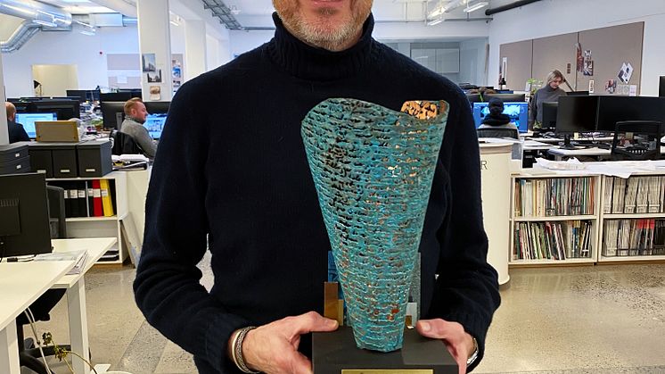 Förutom ära och berömmelse fick Sandellsandberg ta emot den specialutformade PLÅTPRIS-pokalen i koppar, signerad konstnären Marie Louise Kold samt ett plåtdiplom i samma rostfria material som Synvillans fasad.